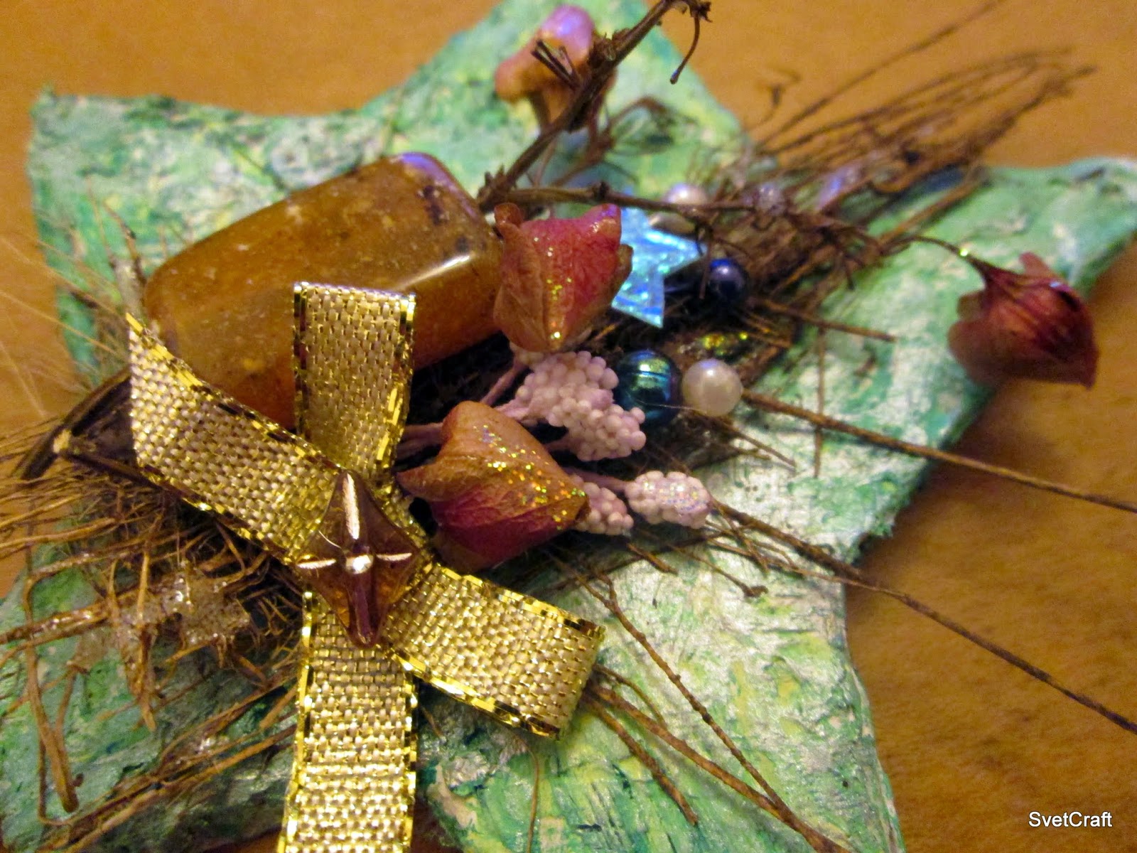 קרטון גלי, ג'סו, משחת עיצוב, צבעי אקריליק, חומרים מן הטבע, Ranger sticklers, סרט, חרוזים והרבה רצון/
