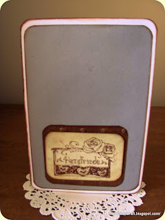 Medium: Tim Holtz Distress Ink (Vintage photo TIM 19527, Fired Brick TIM20202 ) Embellishments : lace, blings and flower from my scrap box