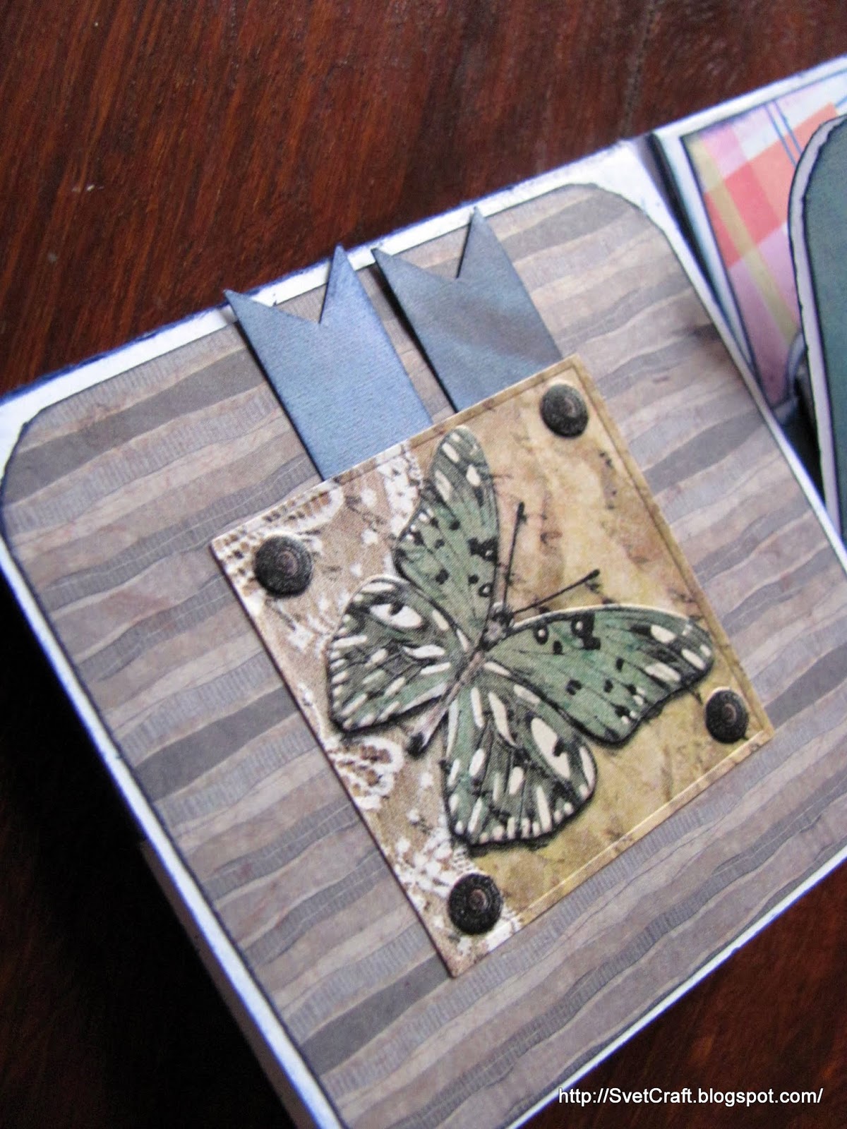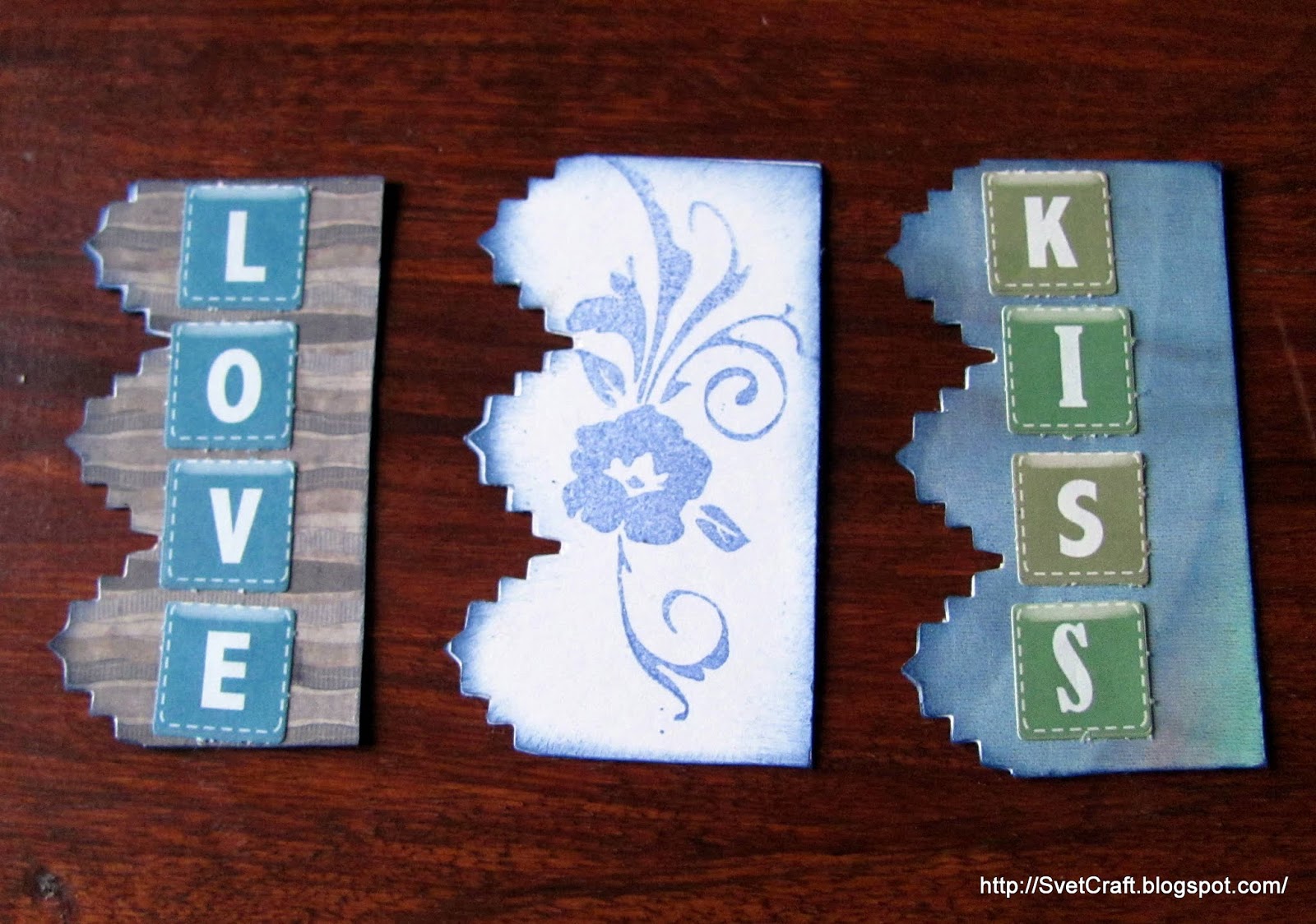 I'm looking for interest and challenge. So.. My colleague asked me to make a card with removable tags for him wedding day. He wants to used the this tags as personal coupons . I told him: no problem and made something else :-)